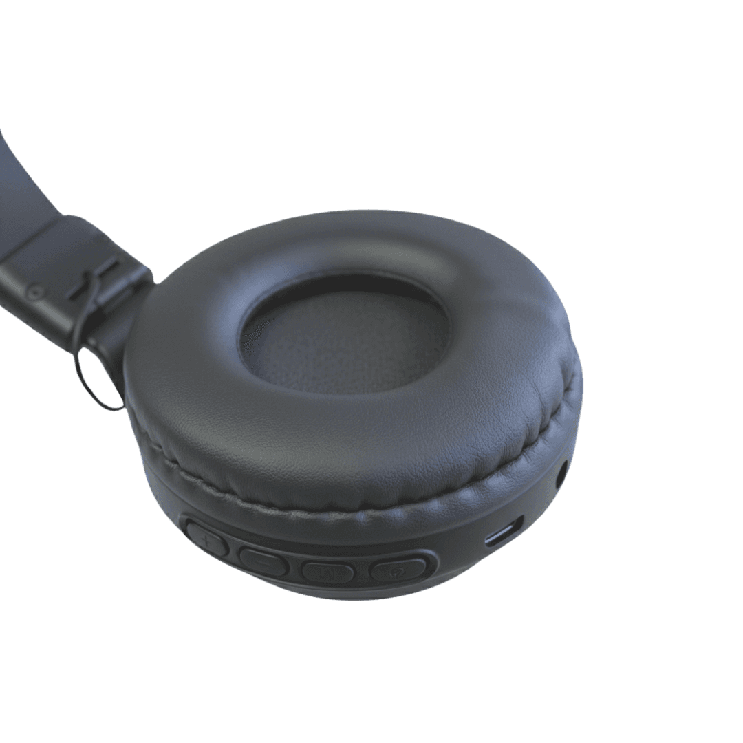 On-ear con reducción de sonido (no cancelación), Bluetooth 5.0, alcance 10 m, 5 h de reproducción (carga 2 h). Vincha ajustable, almohadillas acolchadas, controles en copa.Conexiones: micro-USB (cable incluido), lector microSD y entrada 3,5 mm (cable no incluido).Características principales: BT 5.0 · 5 h de uso · 10 m alcance. Vincha liviana y cómoda. Controles integrados + microSD/3,5 mm.